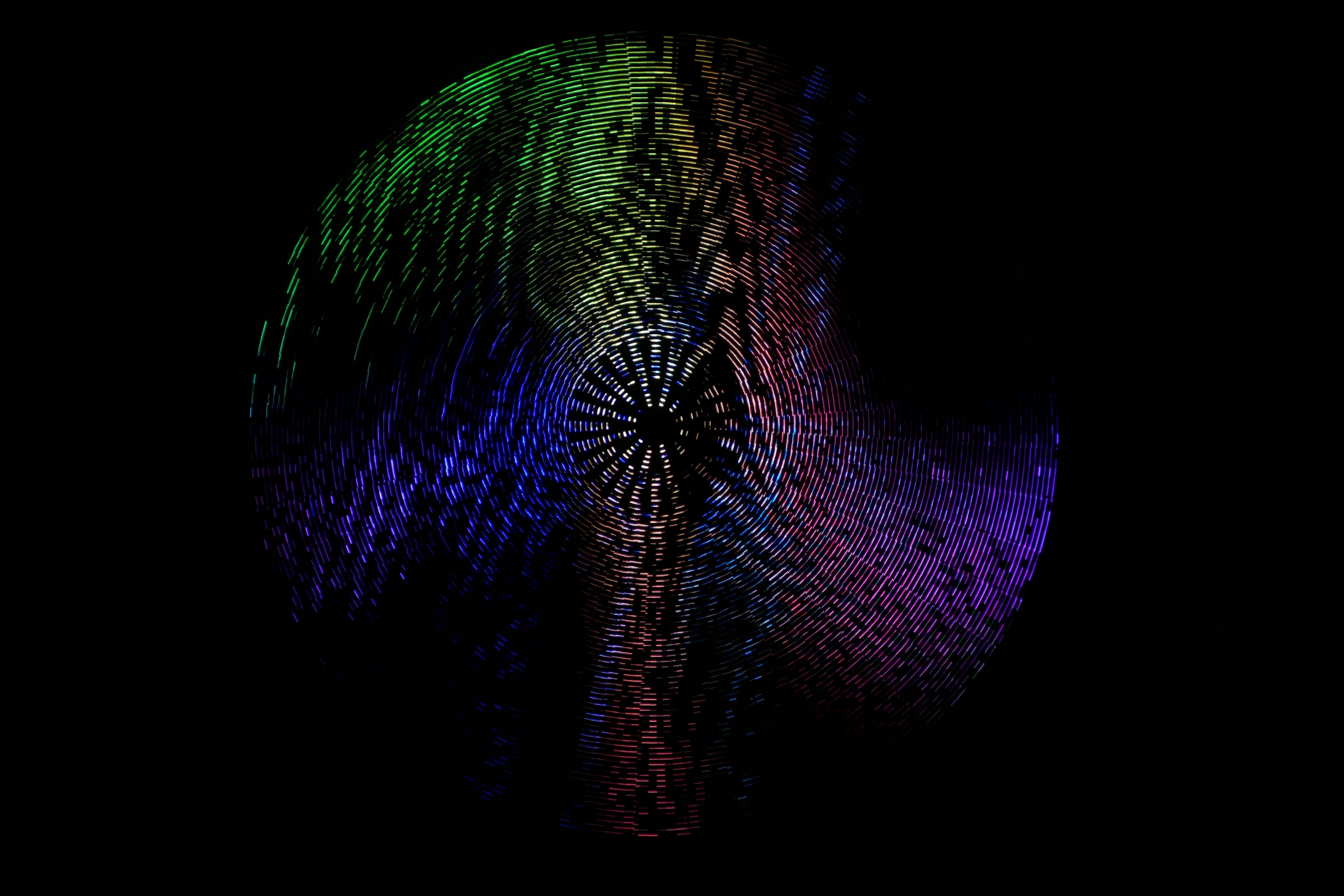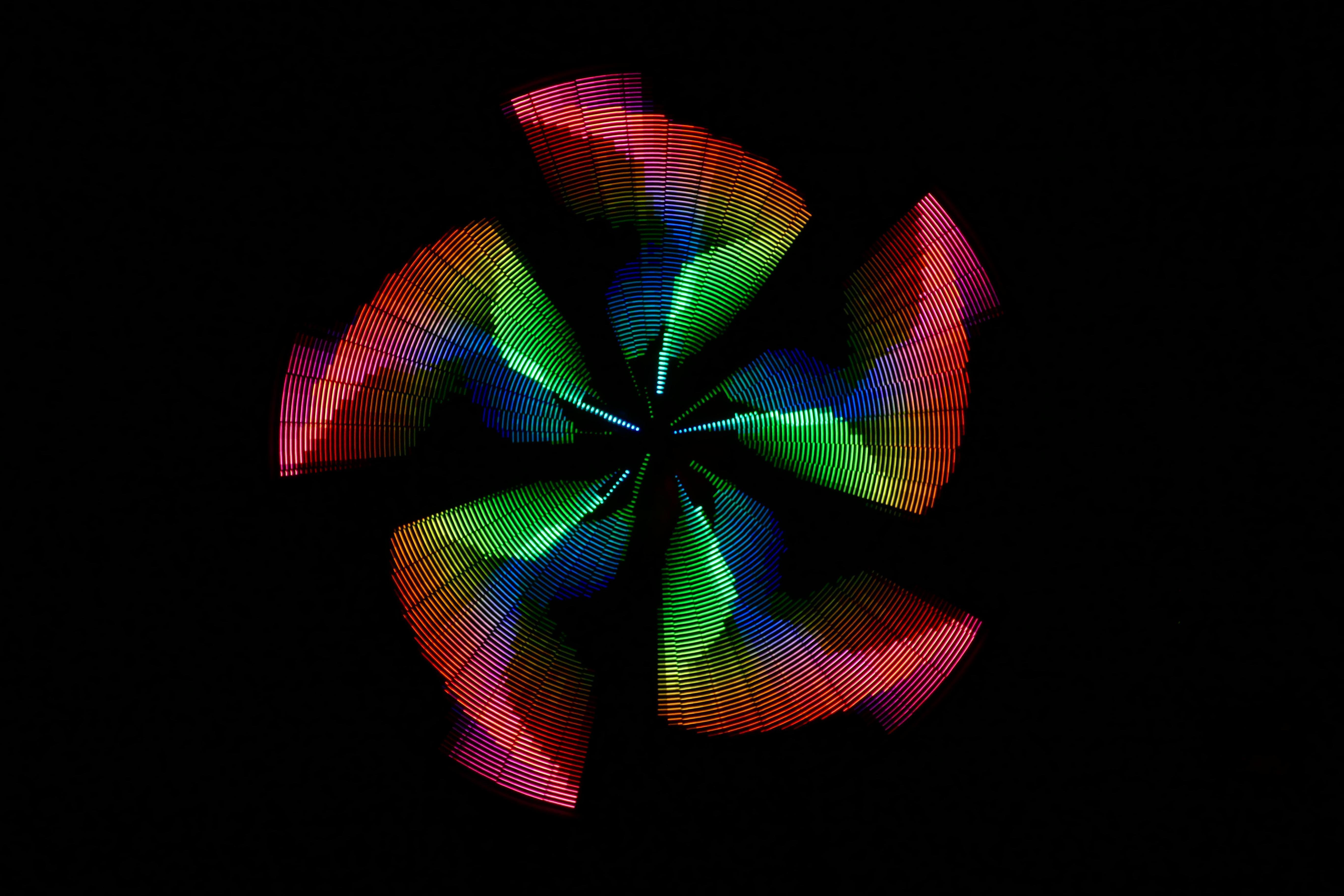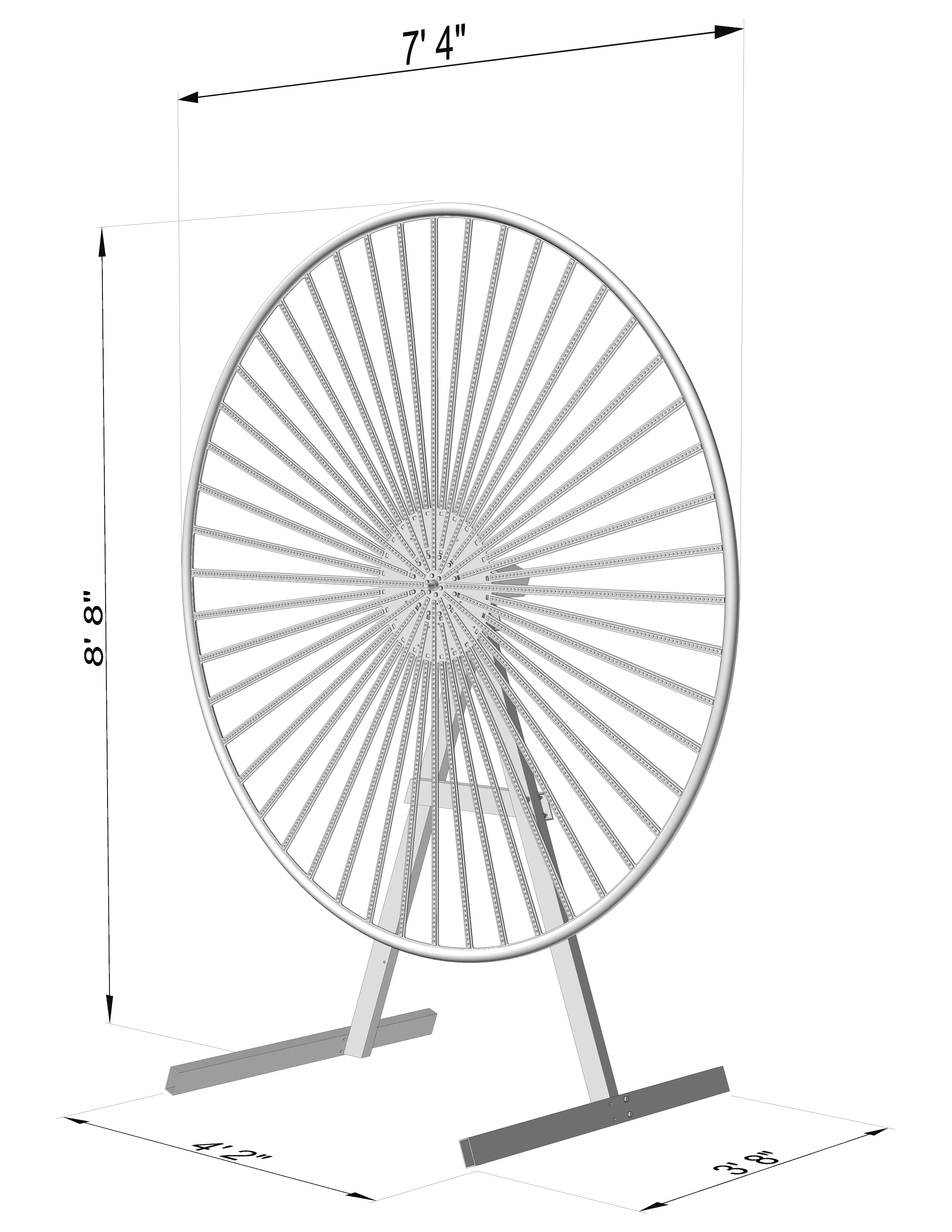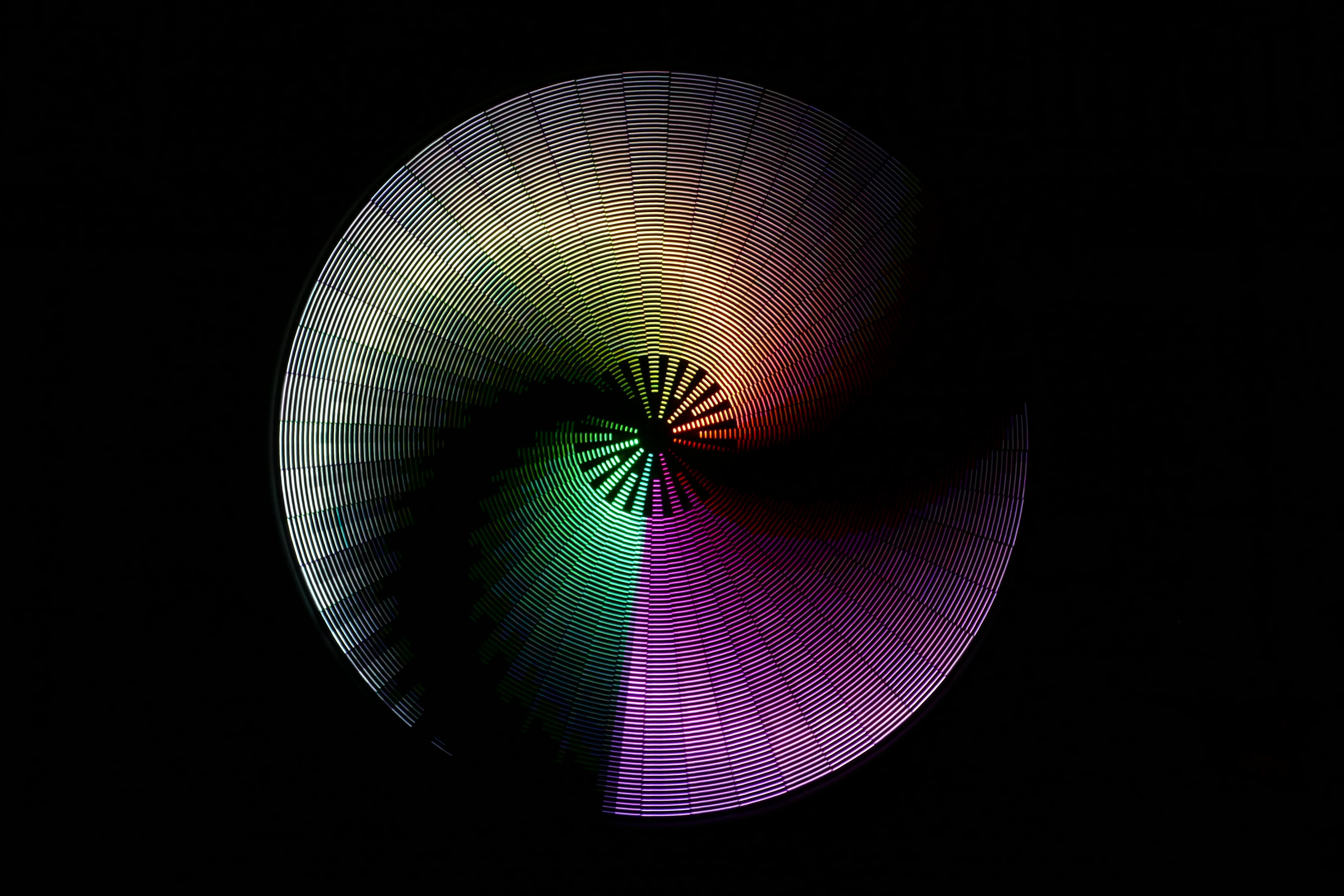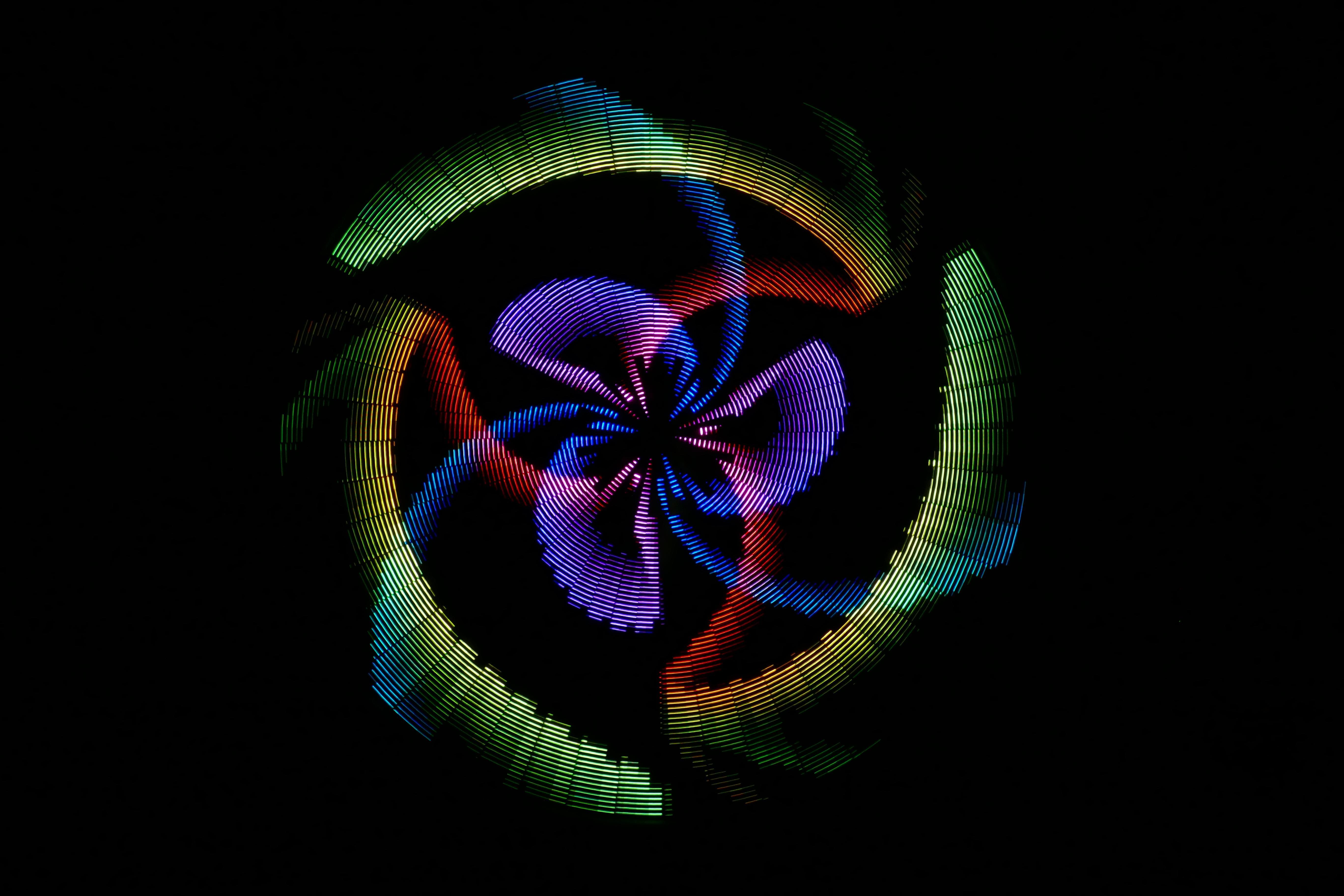 Mesmer is a 88” disc with 3,132 LEDs on 48 spokes. As the disc spins, the LEDs change color for a dazzling variety of animated patterns.