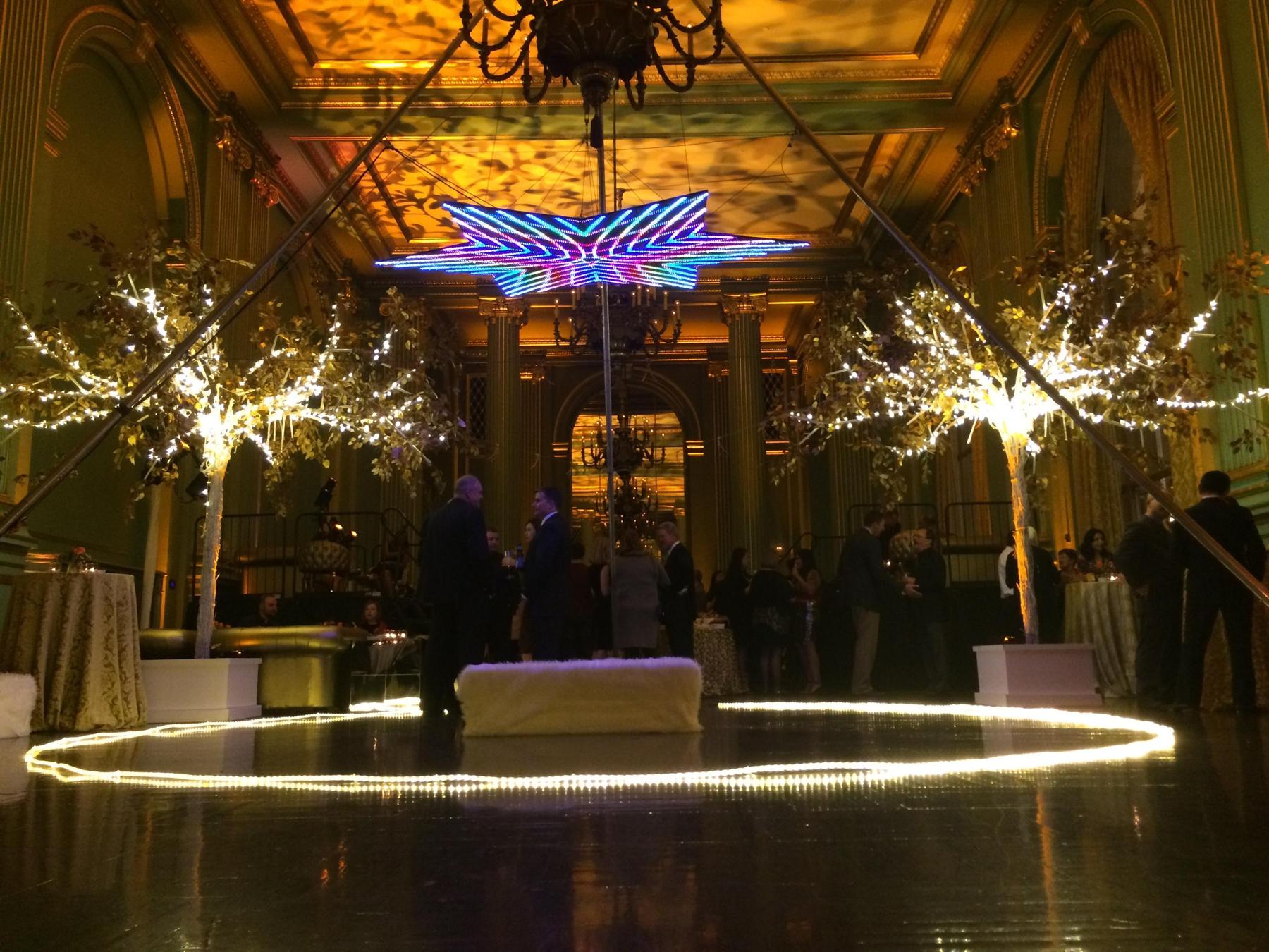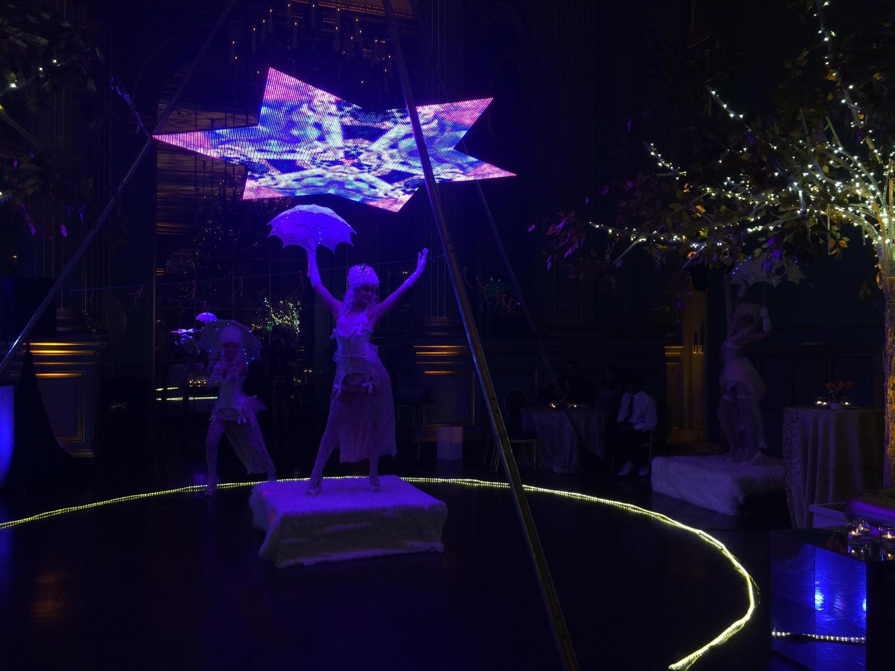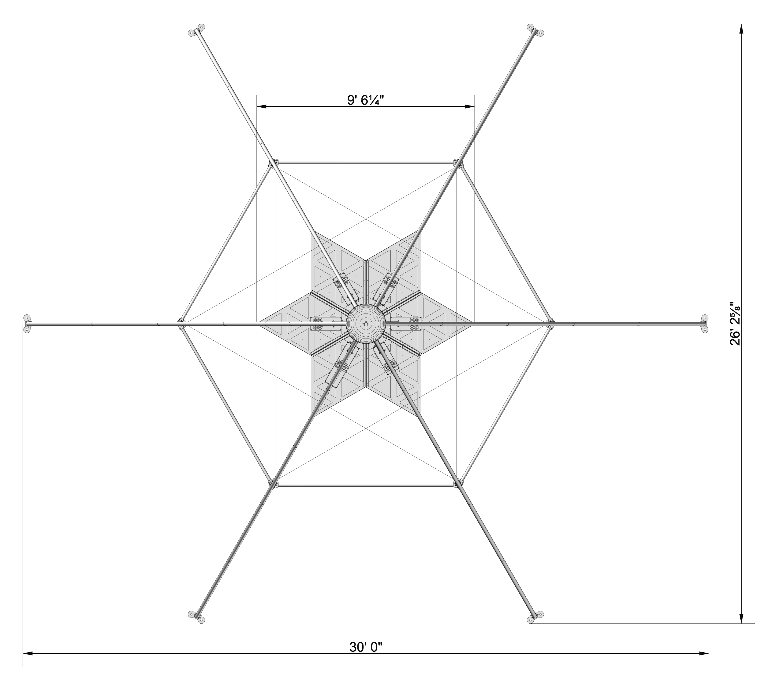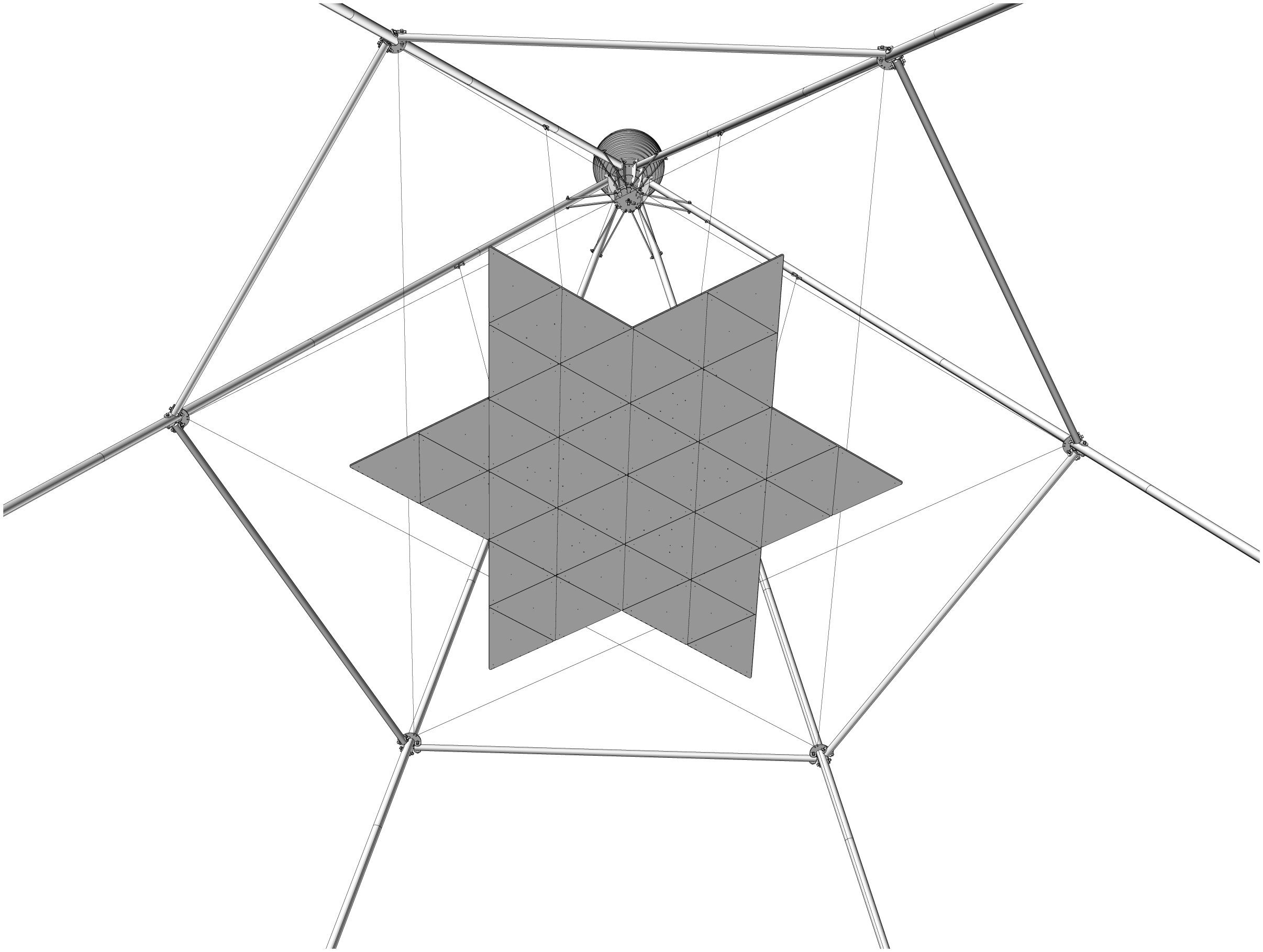 Nova is a 10’ diameter panel of 21,600 LEDs in a 6-pointed star. A computer controls the color and brightness of each LED, creating a vast animated video screen with a triangular grid. The displayed scenes range from majestic celestial images to playful animations to mind-stretching psychedelia.