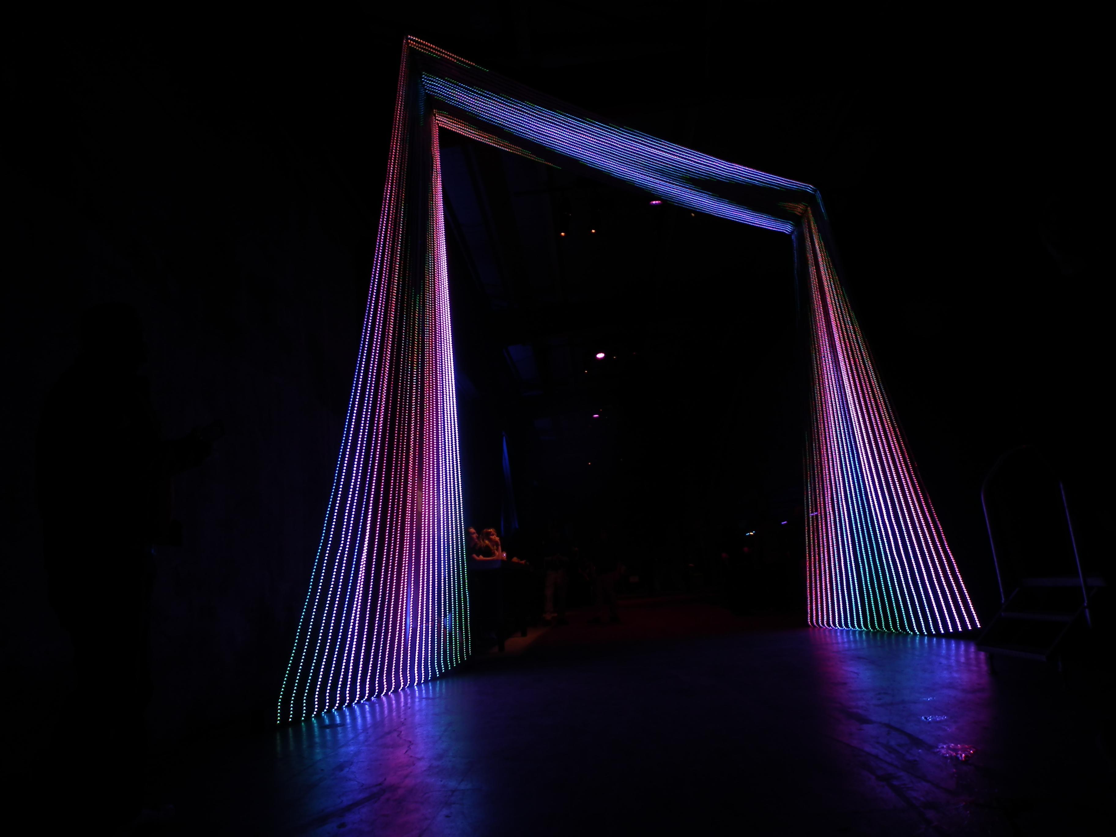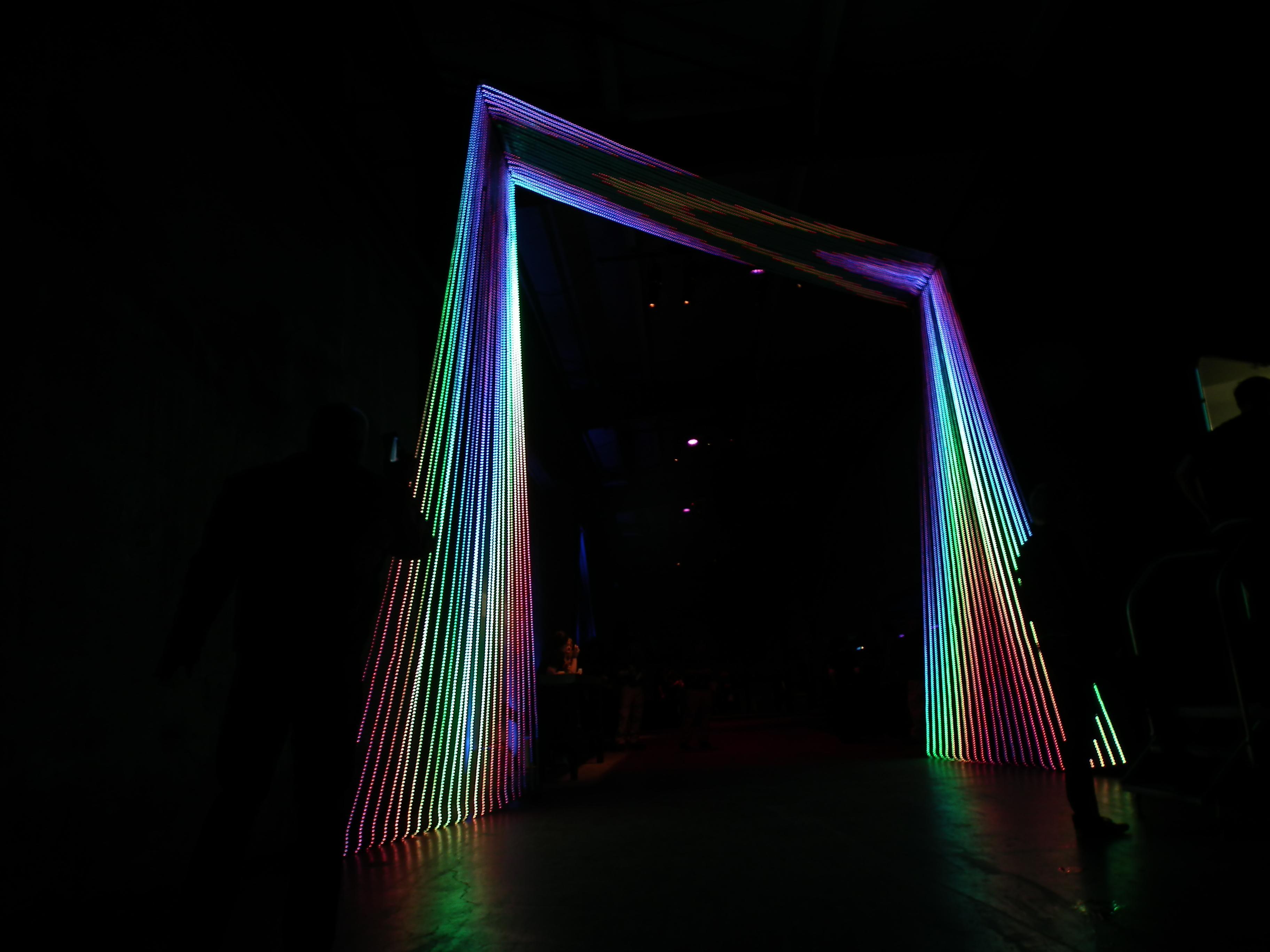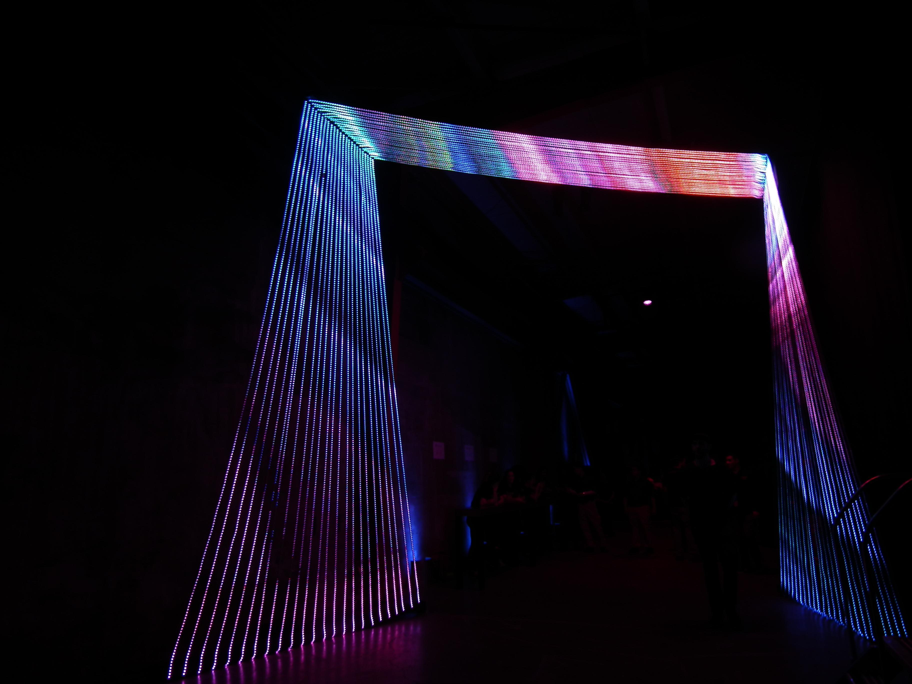 Play Portal was an LED sculpture created by Christopher Schardt, Peter Tjeerdsma, and Kevin Byall. It had 72 5m strips, each with 240 LEDs - a total of 17,280. It was custom-created for a Google Play event in San Francisco in 2014.