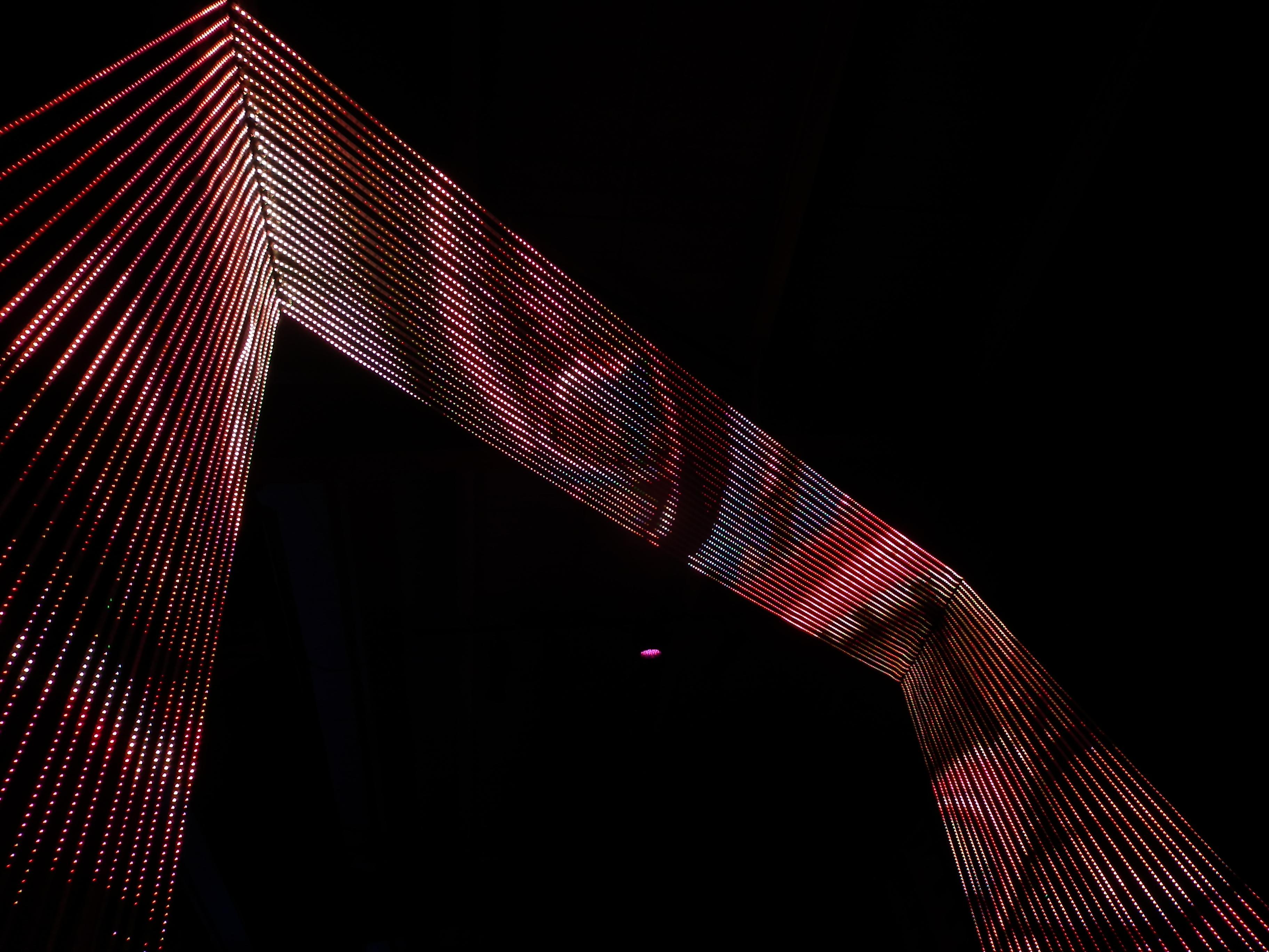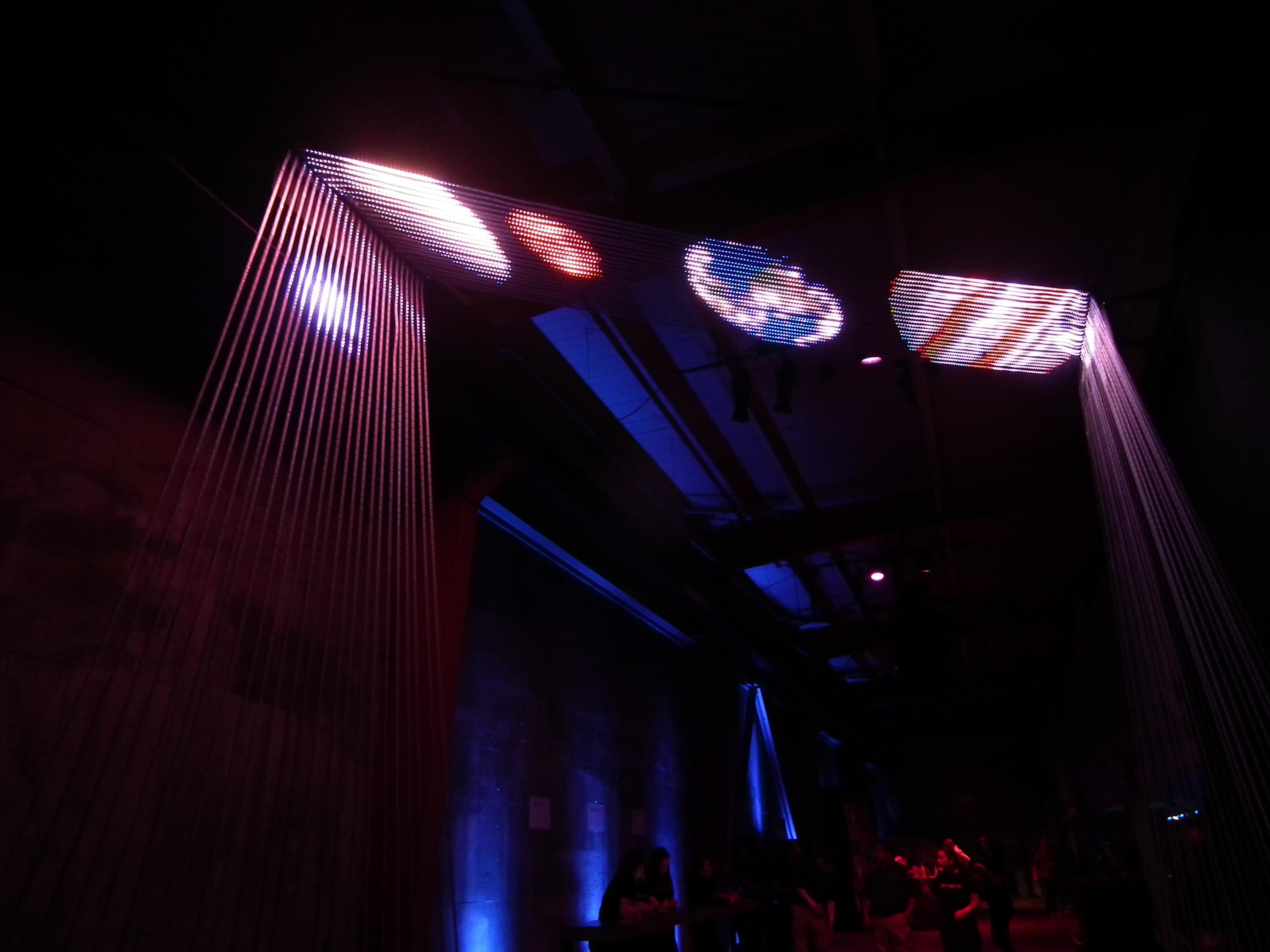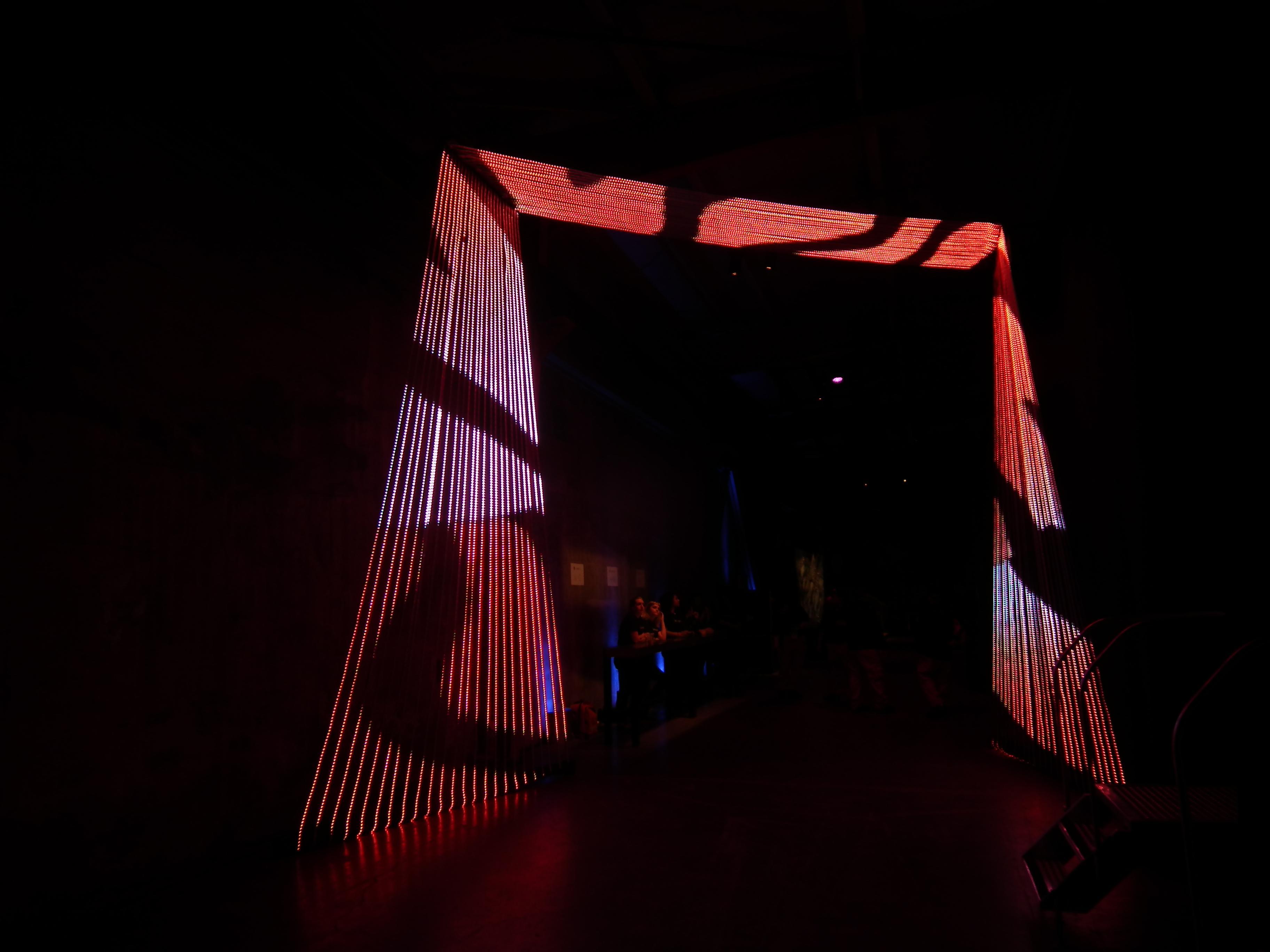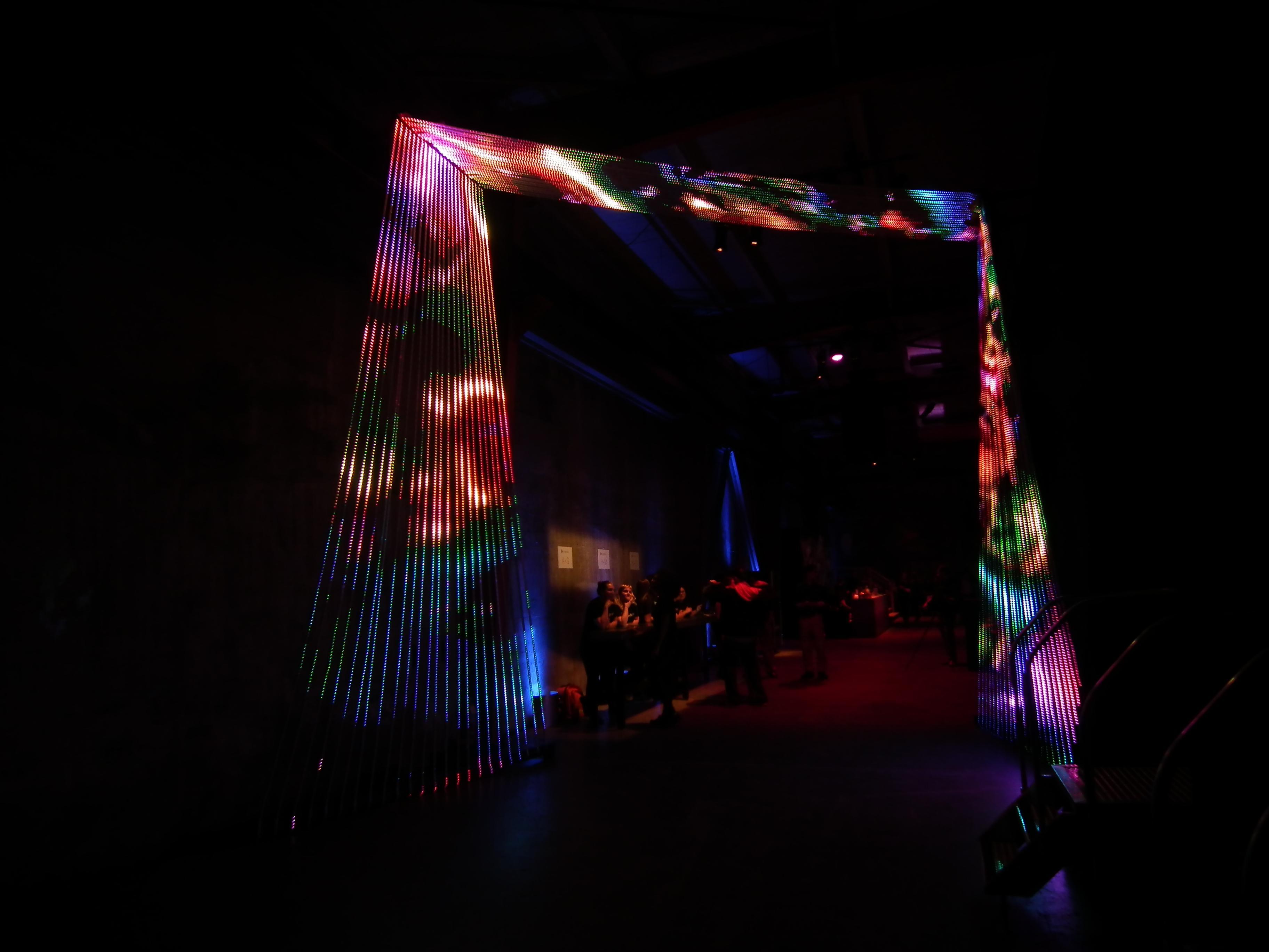 Play Portal was an LED sculpture created by Christopher Schardt, Peter Tjeerdsma, and Kevin Byall. It had 72 5m strips, each with 240 LEDs - a total of 17,280. It was custom-created for a Google Play event in San Francisco in 2014.
